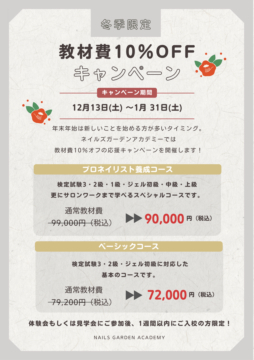 教材費10%OFFキャンペーンを開催いたします 年末年始は、 新しいことを始める方が...